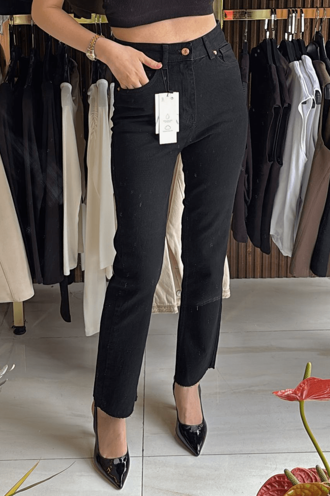 - Model: Skinny fit, yüksek bel